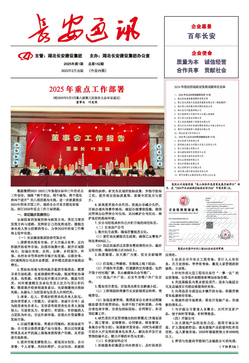 • 2025-09-27 湖北長安建設集團股份有限公司 榮獲2025湖北民營企業100強稱號,位列第35名